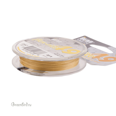 Ювелирный тросик Flex-Rite 49 (49 стальных струн) с нейлоновым покрытием. Диаметр: 0,35 мм (0,014"), дополнительное покрытие: золото 24 карат (24Kt Gold Plate), цвет: античное золото. Выдерживает вес до 5,8 кг. Производство: Япония. Цена указана за 1 катушку 30 футов (9,14 м).