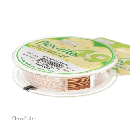 Ювелирный тросик Flex-Rite 49 (49 стальных струн) тонкий с нейлоновым покрытием. Диаметр: 0,35 мм, цвет: розовое золото. Выдерживает вес до 7,3 кг. Производство: Япония. Цена указана за 1 катушку 30 футов (9,14 м).