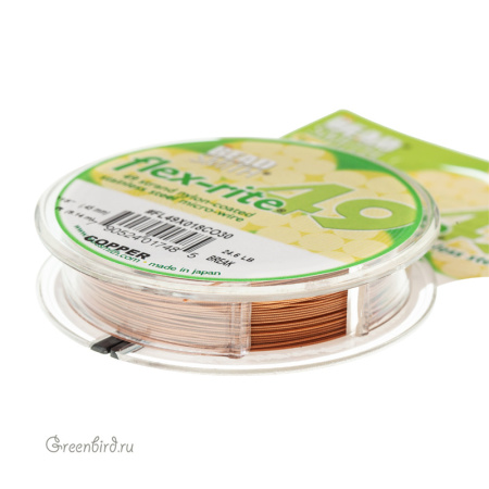 Ювелирный тросик Flex-Rite 49 (49 стальных струн) с нейлоновым покрытием. Диаметр: 0,45 мм, цвет: медь. Выдерживает вес до 11 кг. Производство: Япония. Цена указана за 1 катушку 30 футов (9,14 м).
