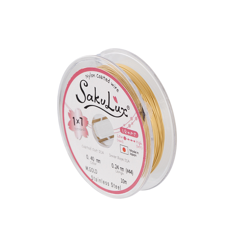 Профессиональный японский ювелирный тросик SakuLux (FLEXY) идеально подходит для создания украшений и аксессуаров. Трос (ланка) выполнен из высококачественной стали с прочной и гибкой нейлоновой оплеткой золотого цвета.