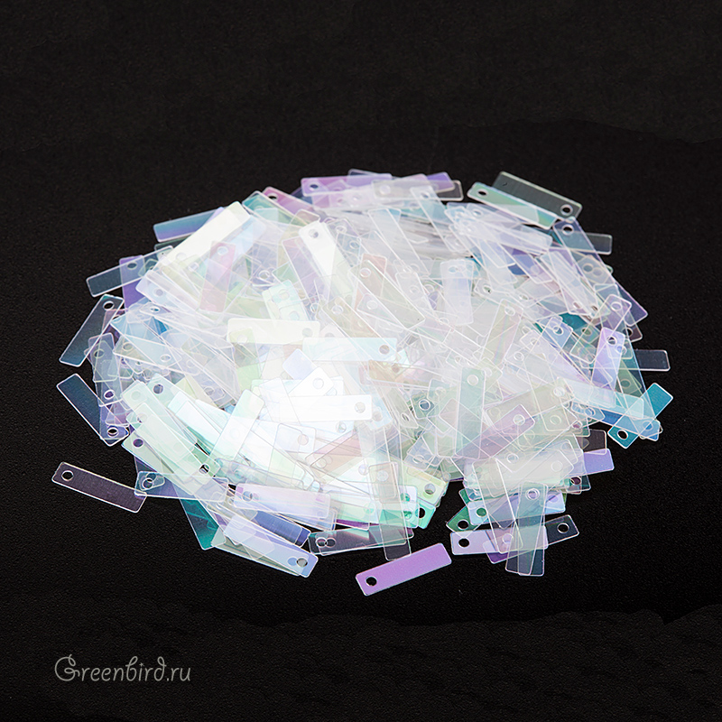 Пайетки плоские Motivo M95 с одним отверстием (100% полиэстер), используются в декоративной вышивке. Цвет: прозрачный, радужный, эффект: Irise Trasparenti, размер: 9 х 2,5 мм. Производство: Италия. Цена указана за 3 грамма (примерно 585 штук).
