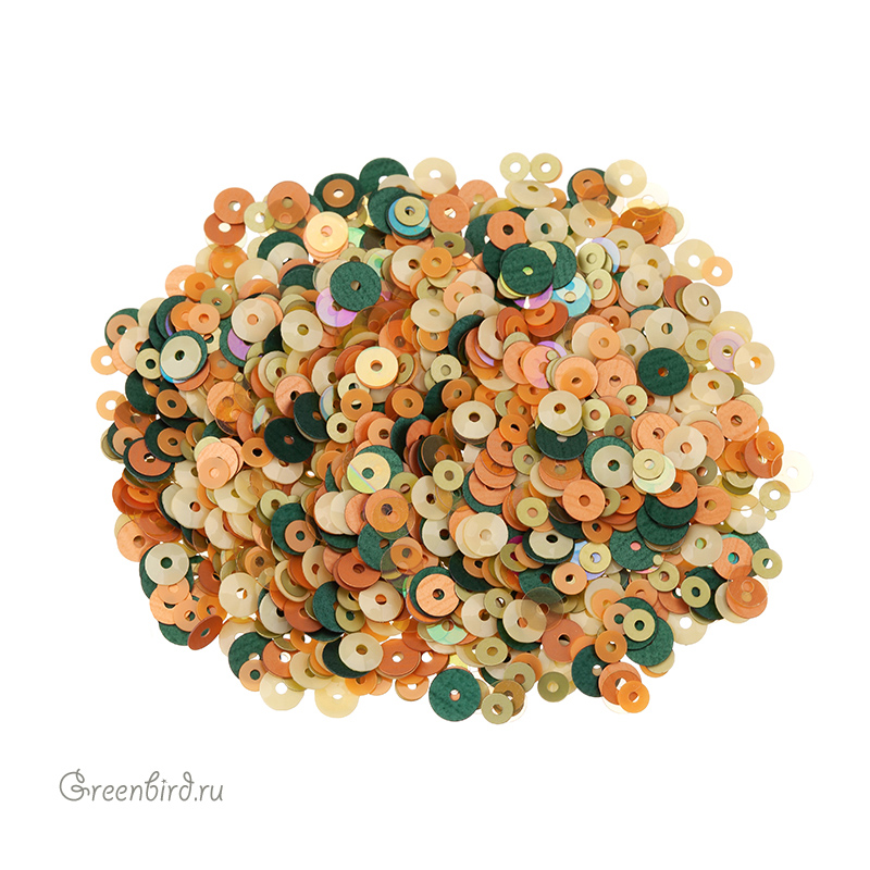 Фирменный микс пайеток от GreenBird (100% полиэстер), используются в декоративной вышивке. Специальная палитра: Бархатцы. Цвета: #3004 (3 мм плоские), #726W (3 мм плоские), #256W (4 мм плоские), #110 (4 мм плоские), #796W (5 мм плоские), #2134 (4 мм чаша). Уход: не стирать, не отбеливать, гладить на единичке (120°), не сушить в барабане машинки, сухая чистка ℗. Производство: Италия. Цена указана за тубу (примерно 4 грамма).
