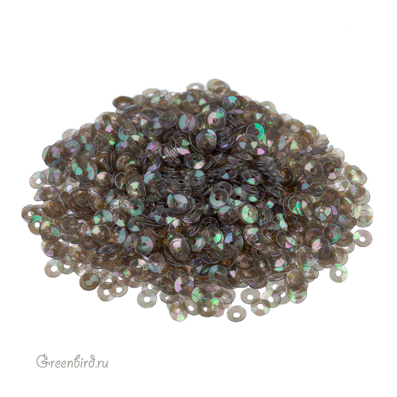 Пайетки чаша (100% полиэстер), используются в декоративной вышивке. Цвет: серый, эффект: Irise Trasparenti, размер: 3 мм. Производство: Италия. Цена указана за 3 грамма (примерно 1700 штук).