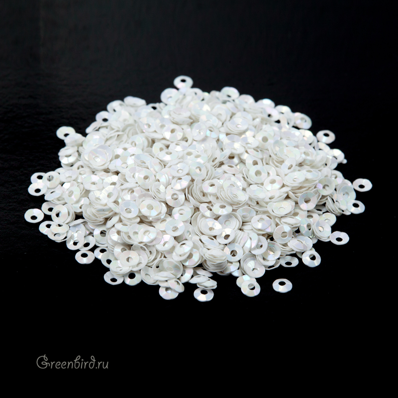 Пайетки чаша (100% полиэстер), используются в декоративной вышивке. Цвет: перламутр, эффект Orientali, размер: 3 мм. Производство: Италия. Цена указана за 3 грамма (примерно 1700 штук).