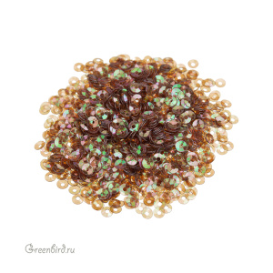 Пайетки чаша (100% полиэстер), используются в декоративной вышивке. Цвет: красно-коричневый, эффект Irise Transparenti, размер: 3 мм. Производство: Италия. Цена указана за 3 грамма (примерно 1700 штук).