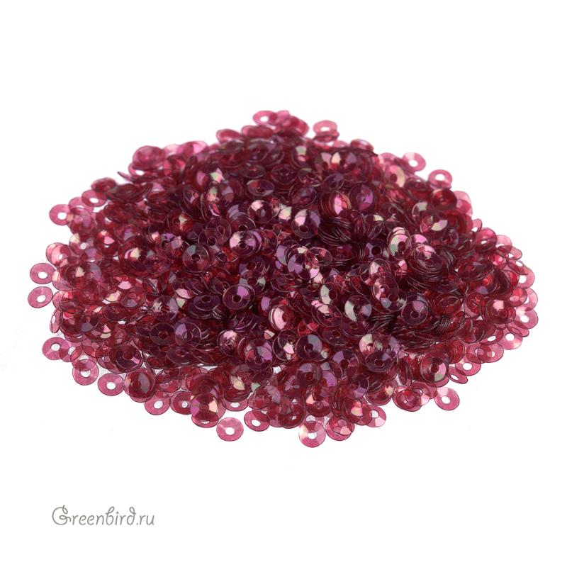 Пайетки чаша (100% полиэстер), используются в декоративной вышивке. Цвет: винный, эффект: Irise Trasparenti, размер: 3 мм. Производство: Италия. Цена указана за 3 грамма (примерно 1700 штук).
