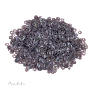 Пайетки чаша (100% полиэстер), используются в декоративной вышивке. Цвет: серый (на просвет лилово-коричневый), эффект Orientali, размер: 3 мм. Производство: Италия. Цена указана за 3 грамма (примерно 1700 штук).