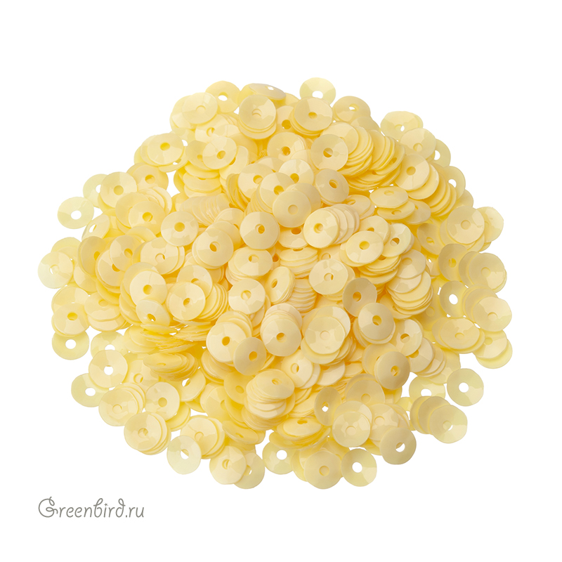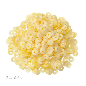 Пайетки чаша (100% полиэстер), используются в декоративной вышивке. Цвет: лимонно-желтый, эффект Opaline, размер: 4 мм. Производство: Италия. Цена указана за 3 грамма (примерно 1000 штук).
