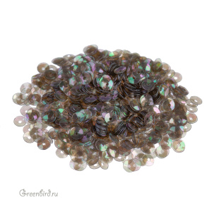 Пайетки чаша (100% полиэстер), используются в декоративной вышивке. Цвет: серый, эффект Irise Transparenti, размер: 4 мм. Производство: Италия. Цена указана за 3 грамма (примерно 1000 штук).