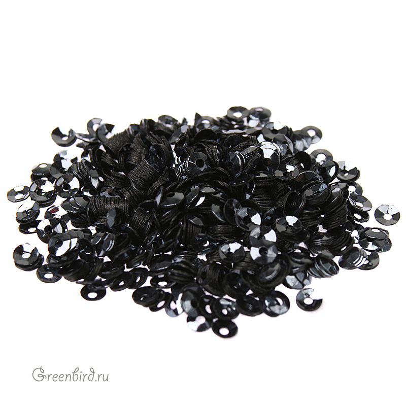 Пайетки чаша (100% полиэстер), используются в декоративной вышивке. Цвет: Сфинкс (черный оникс), размер: 3 мм. Производство: Франция. Цена указана за нить 1000 штук (примерно 1,5 грамма).