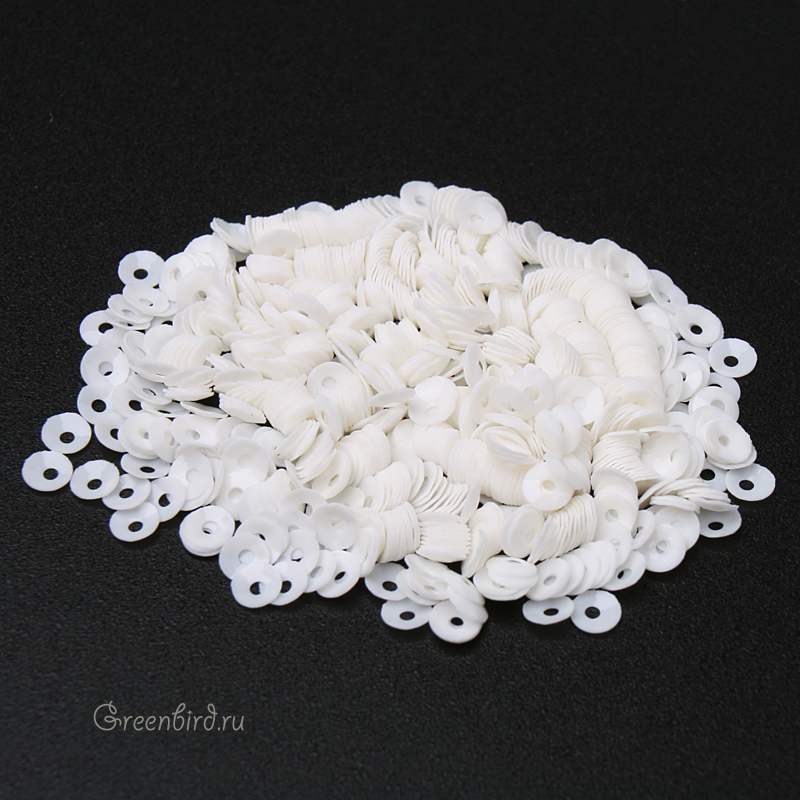 Пайетки чаша (100% полиэстер), используются в декоративной вышивке. Цвет: глянцевый, белый, размер: 3 мм. Производство: Франция. Цена указана за нить 1000 штук (примерно 1,5 грамма).