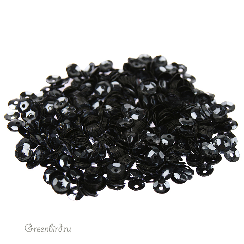 Пайетки чаша (100% полиэстер), используются в декоративной вышивке. Цвет: Сфинкс (черный оникс), размер: 4 мм. Производство: Франция. Цена указана за нить 1000 штук (примерно 2,5 грамма).