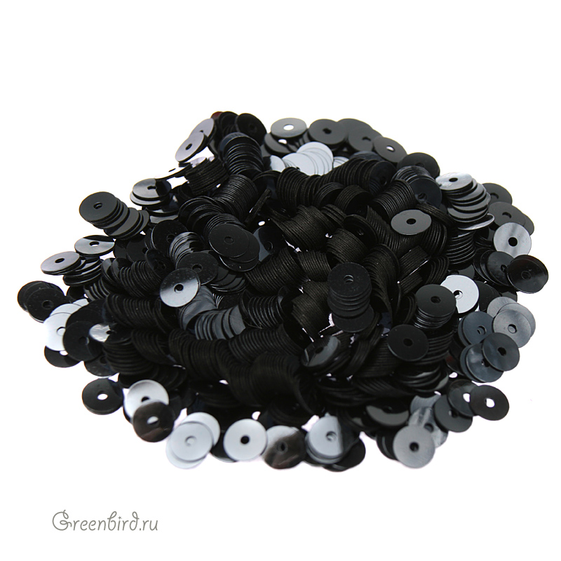 Пайетки плоские (100% полиэстер), используются в декоративной вышивке. Цвет: Сфинкс (черный оникс), размер: 4 мм. Производство: Франция. Цена указана за нить 1000 штук (примерно 2,8 грамма).