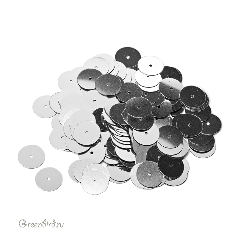 Пайетки плоские (100% полиэстер), используются в декоративной вышивке. Цвет: серебро, эффект Metallizzati, размер: 10 мм. Производство: Италия. Цена указана за 3 грамма (примерно 156 штук).