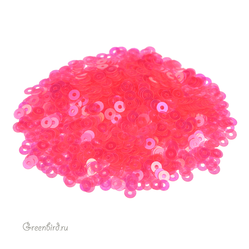 Пайетки плоские (100% полиэстер), используются в декоративной вышивке. Цвет: неоново-розовый, эффект Irise Transparenti, размер: 3 мм. Производство: Италия. Цена указана за 3 грамма (примерно 1800 штук).