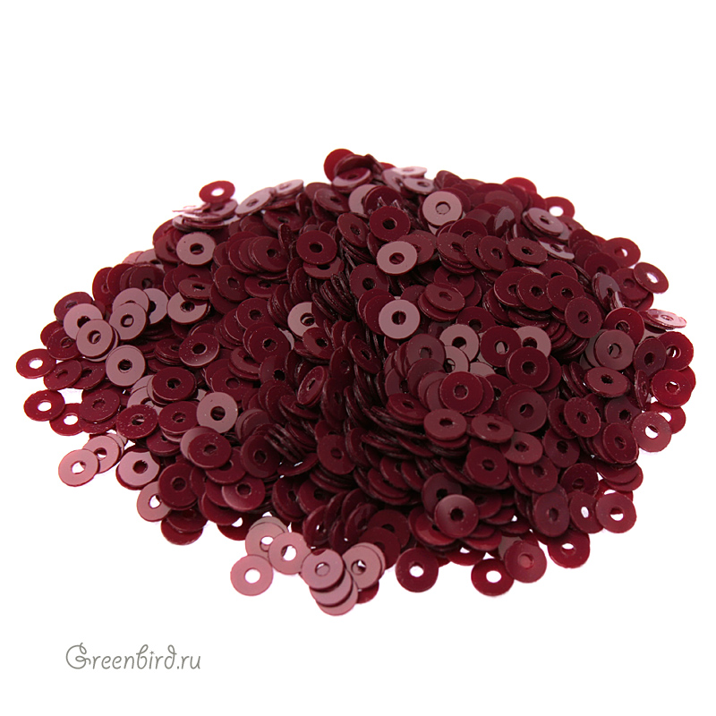 Пайетки плоские (100% полиэстер), используются в декоративной вышивке. Цвет: бордо, эффект: Opaline, размер: 3 мм. Уход: бережная стирка 30°, не отбеливать, гладить на единичке (120°), не сушить в барабане машинки, сухая чистка ℗. Производство: Италия. Цена указана за 3 грамма (примерно 1800 штук).