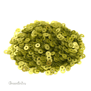 Пайетки плоские (100% полиэстер), используются в декоративной вышивке. Цвет: лайм, эффект Satinati MT, размер: 3 мм. Уход: бережная стирка 30°, не отбеливать, гладить на единичке (120°), не сушить в барабане машинки, сухая чистка ℗. Производство: Италия. Цена указана за 3 грамма (примерно 1800 штук).