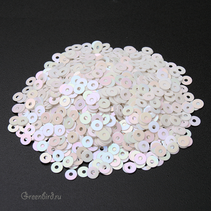 Пайетки плоские (100% полиэстер), используются в декоративной вышивке. Цвет: перламутр, эффект: Orientali, размер: 3 мм. Уход: не стирать, не отбеливать, гладить на единичке (120°), не сушить в барабане машинки, сухая чистка ℗. Производство: Италия. Цена указана за 3 грамма (примерно 1800 штук).
