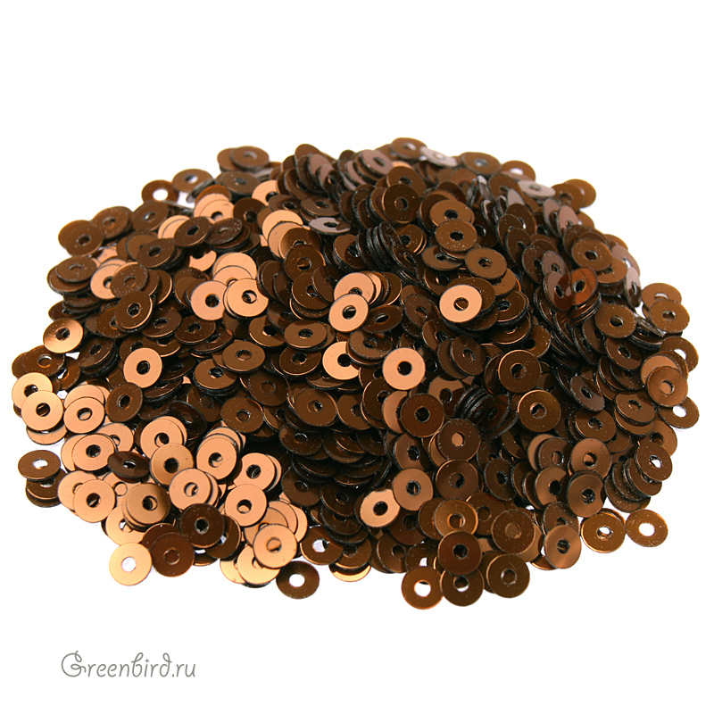 Пайетки плоские (100% полиэстер), используются в декоративной вышивке. Цвет: коричневый, эффект: Metal, размер: 3 мм. Уход: бережная стирка 30°, не отбеливать, гладить на единичке (120°), не сушить в барабане машинки, сухая чистка ℗. Производство: Италия. Цена указана за 3 грамма (примерно 1800 штук).