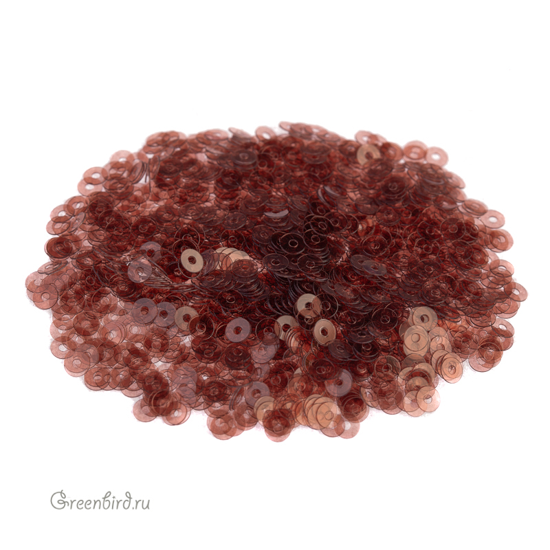 Пайетки плоские (100% полиэстер), используются в декоративной вышивке. Цвет: светло-коричневый, эффект Lustre, размер: 3 мм. Производство: Италия. Цена указана за 3 грамма (примерно 1800 штук).