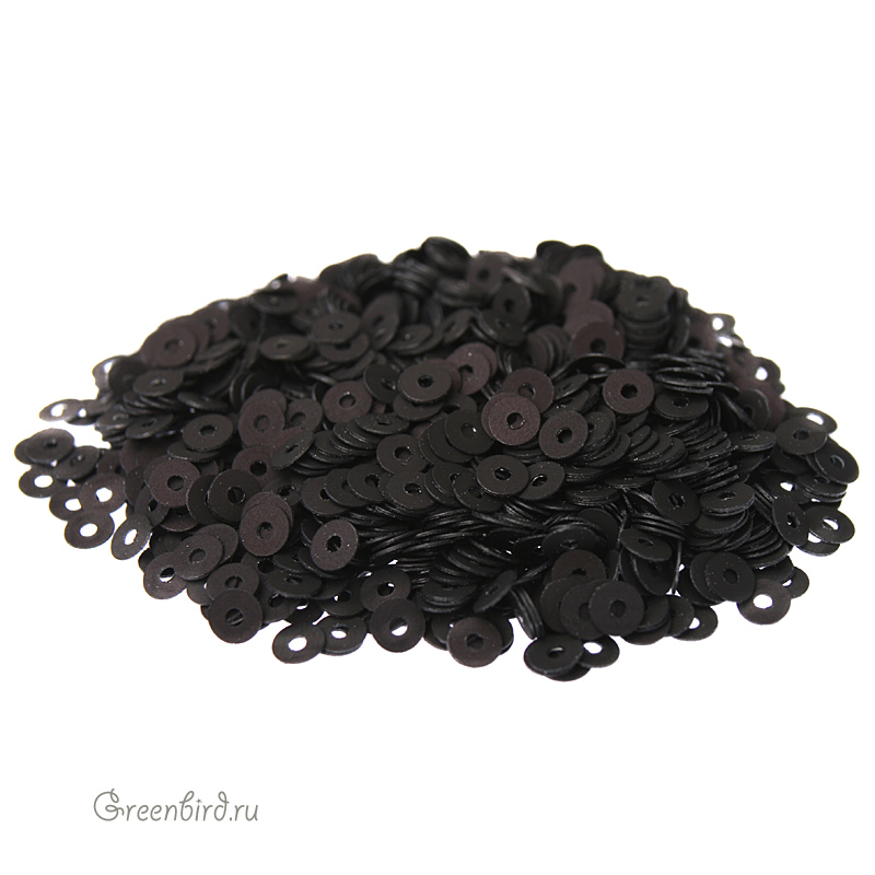 Пайетки плоские (100% полиэстер), используются в декоративной вышивке. Цвет: черный, эффект Satinati MT, размер: 3 мм. Уход: бережная стирка 30°, не отбеливать, гладить на единичке (120°), не сушить в барабане машинки, сухая чистка ℗. Производство: Италия. Цена указана за 3 грамма (примерно 1800 штук).