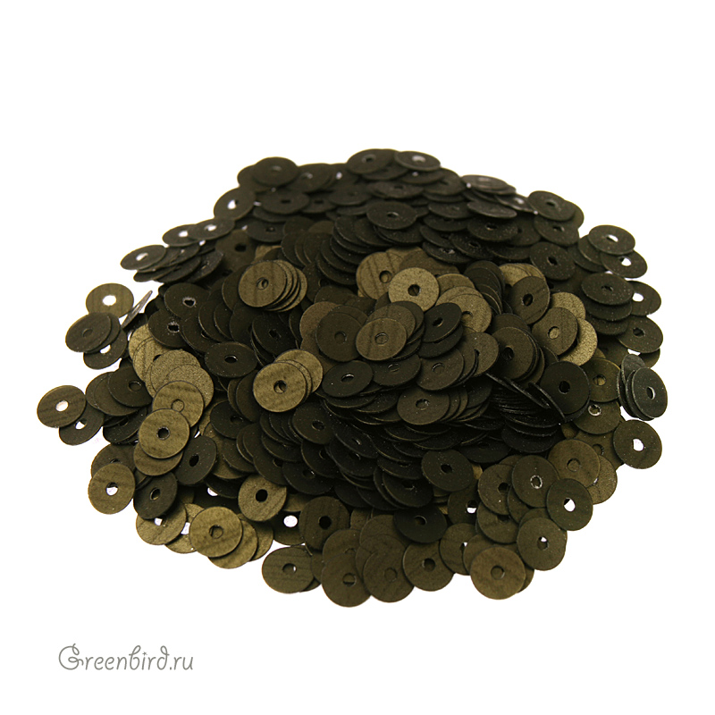 Пайетки плоские (100% полиэстер), используются в декоративной вышивке. Цвет: хаки, эффект: Satinati MT, размер: 4 мм. Уход: бережная стирка 30°, не отбеливать, гладить на единичке (120°), не сушить в барабане машинки, сухая чистка ℗. Производство: Италия. Цена указана за 3 грамма (примерно 1000 штук).