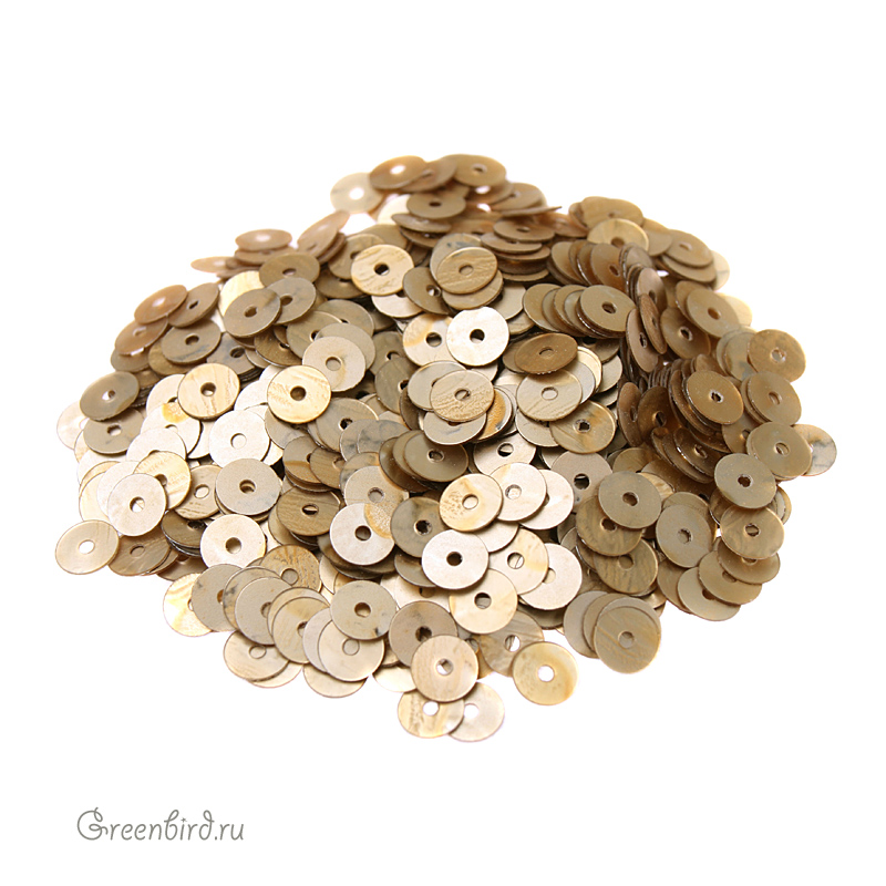 Пайетки плоские (100% полиэстер), используются в декоративной вышивке. Цвет: бежевый состаренный, эффект: Pressy, размер: 4 мм. Уход: бережная стирка 30°, не отбеливать, гладить на единичке (120°), не сушить в барабане машинки, сухая чистка ℗. Производство: Италия. Цена указана за 3 грамма (примерно 1000 штук).