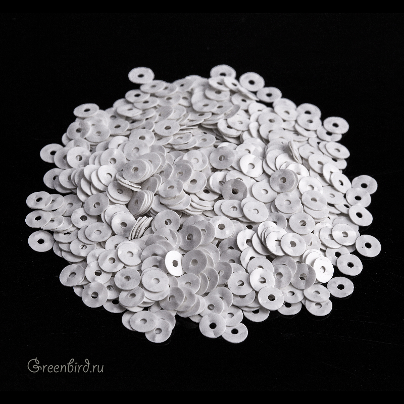 Пайетки плоские (100% полиэстер), используются в декоративной вышивке. Цвет: белый, эффект: Goffrati (гофре, жатая ткань), размер: 4 мм. Уход: бережная стирка 30°, не отбеливать, гладить на единичке (120°), не сушить в барабане машинки, сухая чистка ℗. Производство: Италия. Цена указана за 3 грамма (примерно 1000 штук).