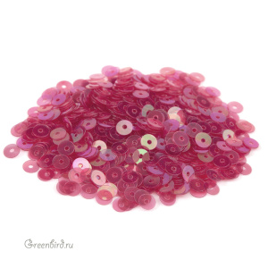 Пайетки плоские (100% полиэстер), используются в декоративной вышивке. Цвет: фуксия, эффект Irise Trasparenti, размер: 4 мм. Производство: Италия. Цена указана за 3 грамма (примерно 1000 штук).