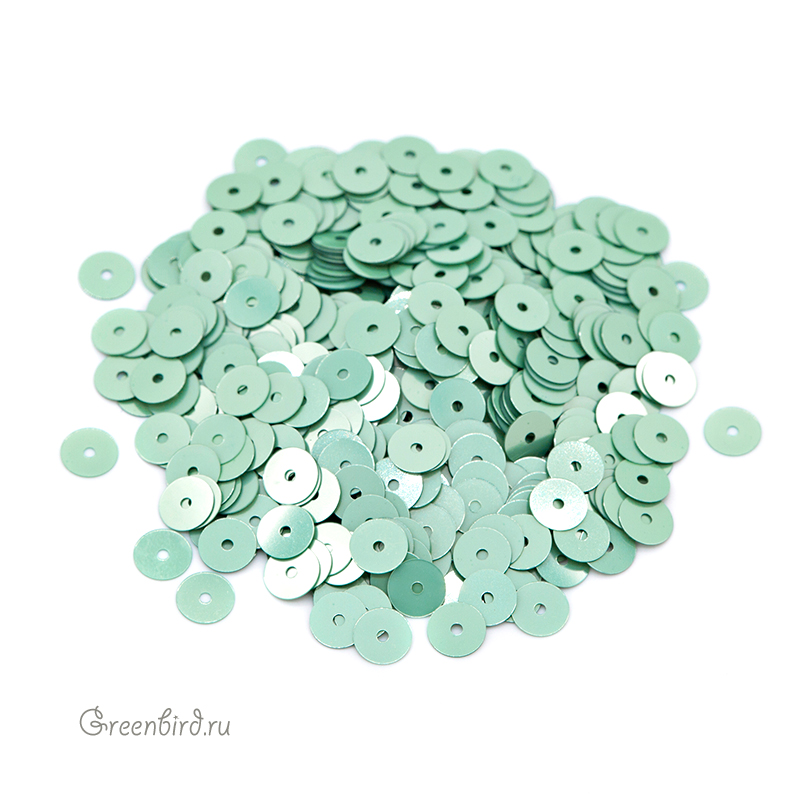 Пайетки плоские (100% полиэстер), используются в декоративной вышивке. Цвет: зеленая бирюза, эффект Metal, размер: 5 мм. Производство: Италия. Цена указана за 3 грамма (примерно 645 штук).