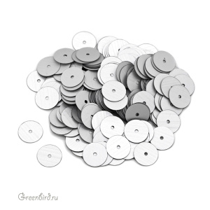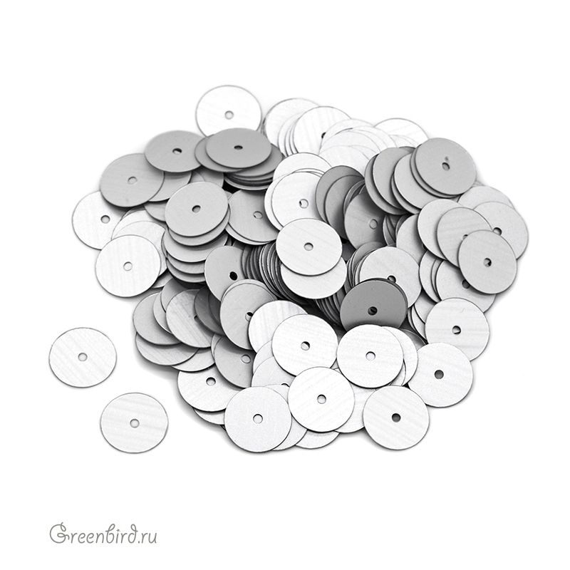 Пайетки плоские (100% полиэстер), используются в декоративной вышивке. Цвет: серебро, эффект Satinati MT, размер: 8 мм. Производство: Италия. Цена указана за 3 грамма (примерно 244 штуки).