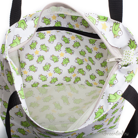 Сумка "Зеленая птичка" на молнии (100% полиэстер) из долговечного износостойкого и водоотталкивающего полотна — незаменимый компаньон для походов за продуктами, на пляж или к нам в шоурум. Внутри маленький кармашек с молнией, ручки из плотной ткани. Стирка при 30 градусах, можно сушить в машинке, не линяет. Рекомендуемая нагрузка: не более 2 кг. Цена указана за 1 шт.