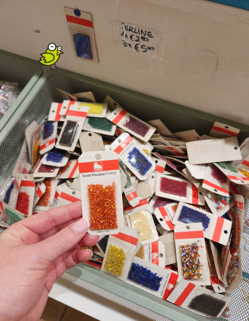 Бисер в сувенирном магазине на Мурано, маркирован Società Veneȥiana Conterie (SVC)