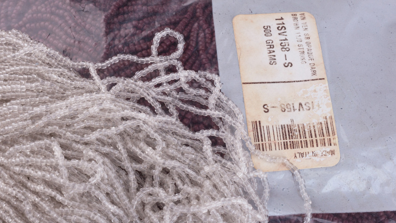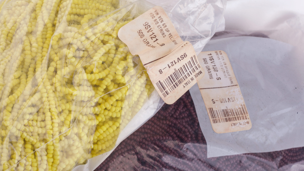 Ветхие этикетки на упаковках винтажного бисера.