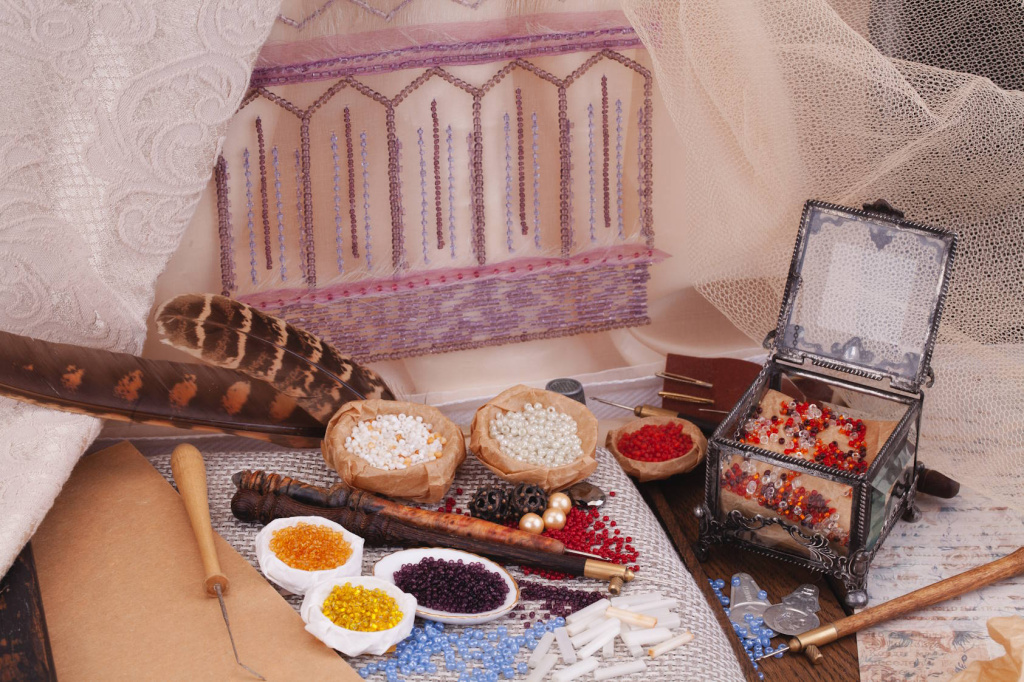 - Коллекционная и художественная ценность: винтажный бисер рассматривается как самостоятельный объект коллекционирования, сопоставимый по логике с винтажным текстилем, где ценятся происхождение, редкость, сохранность и необычные оттенки.