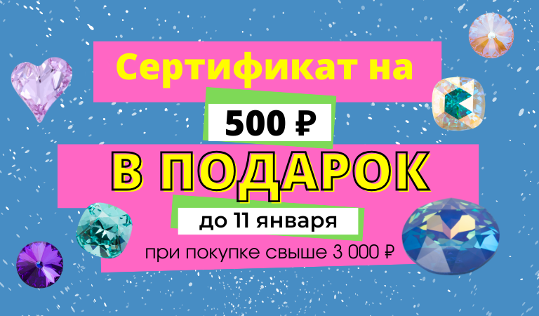 - Сертификат на 500 рублей выдаётся при сумме заказа от 3000 рублей после применения всех скидок.